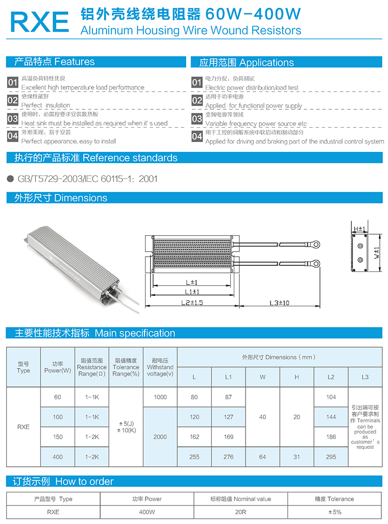 RXE型铝外壳线绕电阻器